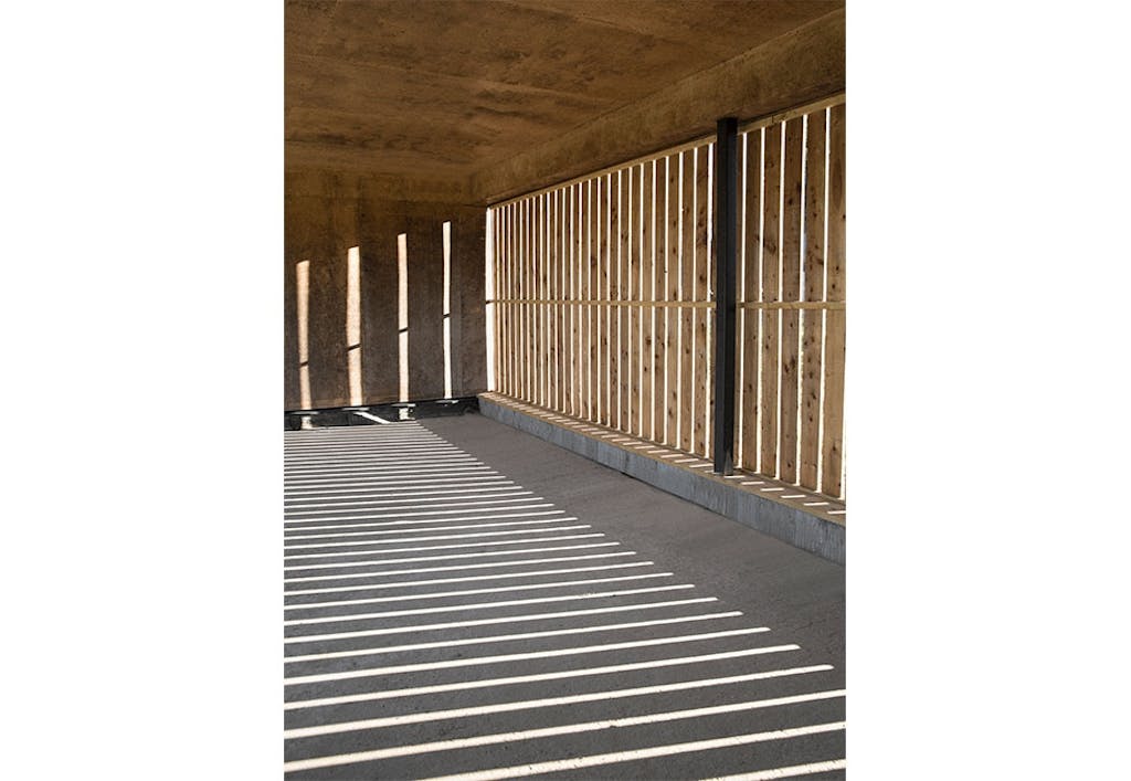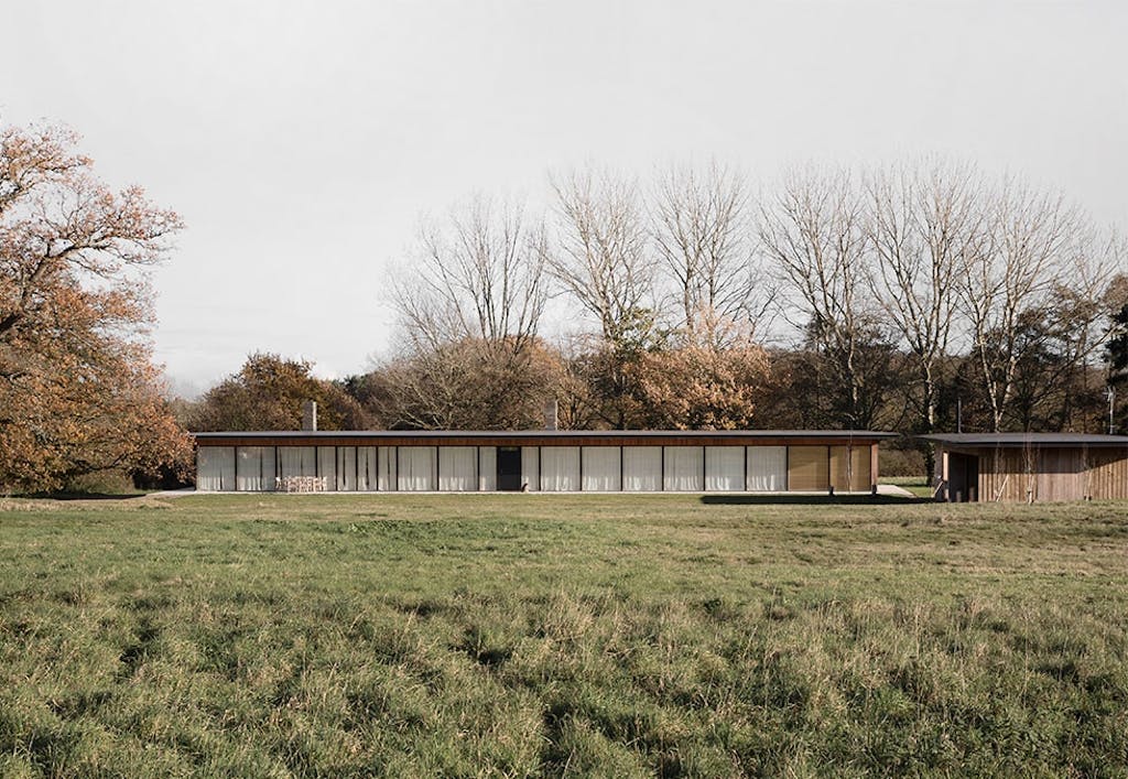 Huset i seg selv er langt, lavt og smalt, og minner overhodet ikke om en arkitektur man vanligvis ser på den britiske landsbygda. Den moderne, skandinaviske designestetikken, som her i all hovedsak fremstår minimalistisk, men lun, har ingen overflødige detaljer. Linjene er ubrutte, men mykes opp av treverkets varme glød. En flat, overhengende takkonstruksjon dekker gangveien som går rundt hele huset, og de store vinduspartiene inviterer naturen inn. Huset er dessuten plassert på en 60 centimeter høy sokkel, for å bedre utsikten til de omkringliggende markene.