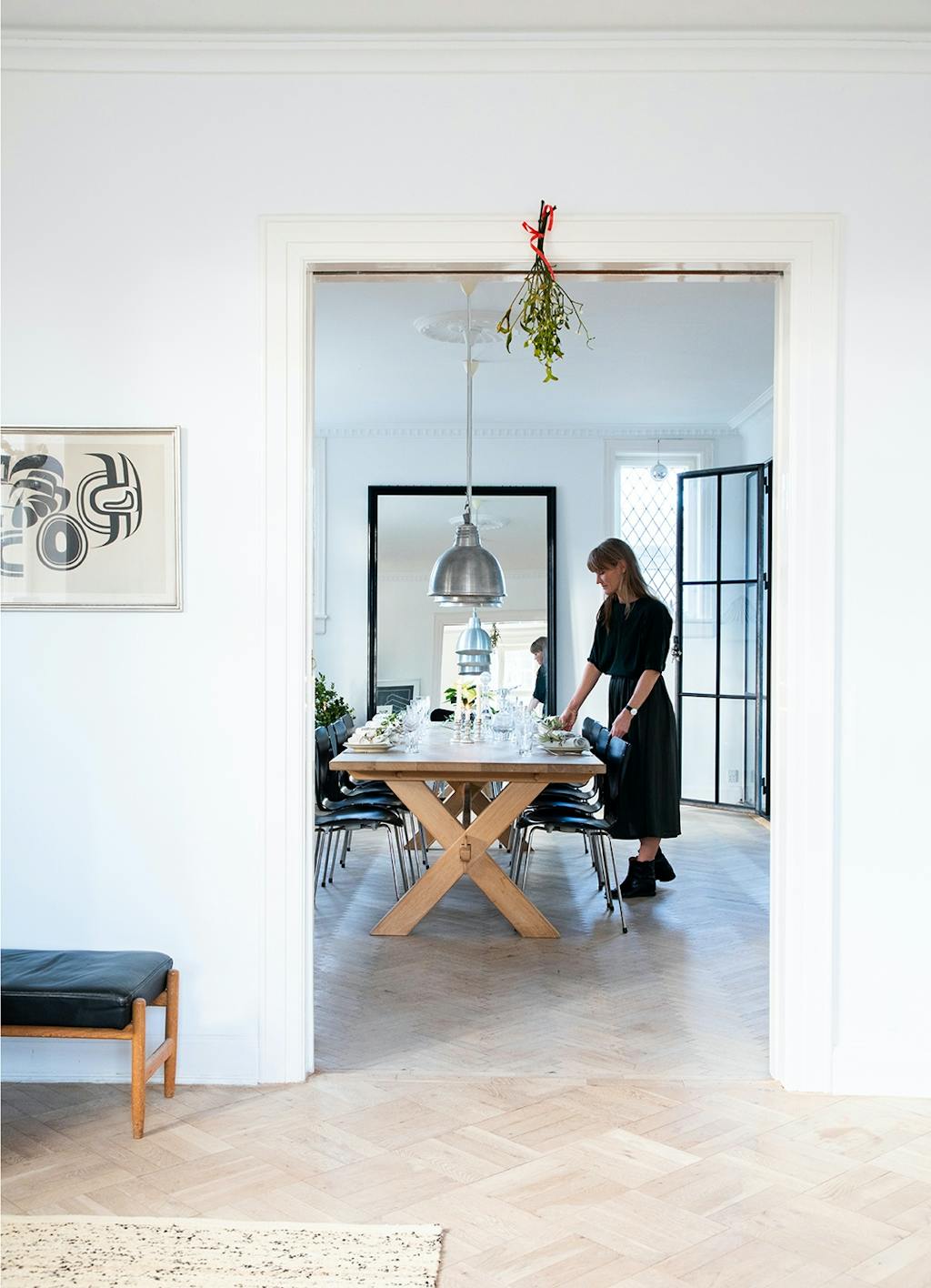 Langs trappen henger store sølvkuler i røde bånd. Slik har det blitt pyntet siden barna var små, og familien flyttet inn i det store huset i Charlottenlund nord for København.