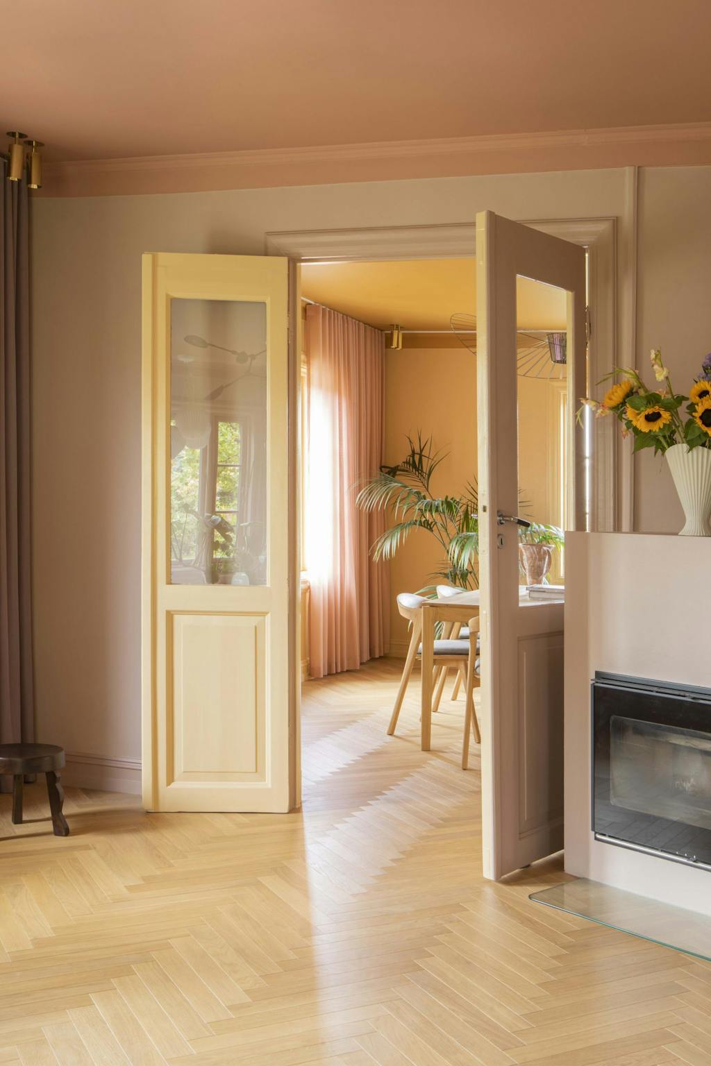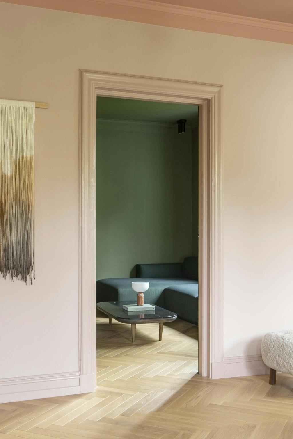 Kontrastene er altså dempet, med et lite unntak av entreen der de sjakkmønstrede gulvflisene fra forrige eier utgjør unntaket som bekrefter regelen. Og regelen er først og fremst variasjon. – Det er noe med den energien du får når du beveger deg gjennom rommene.