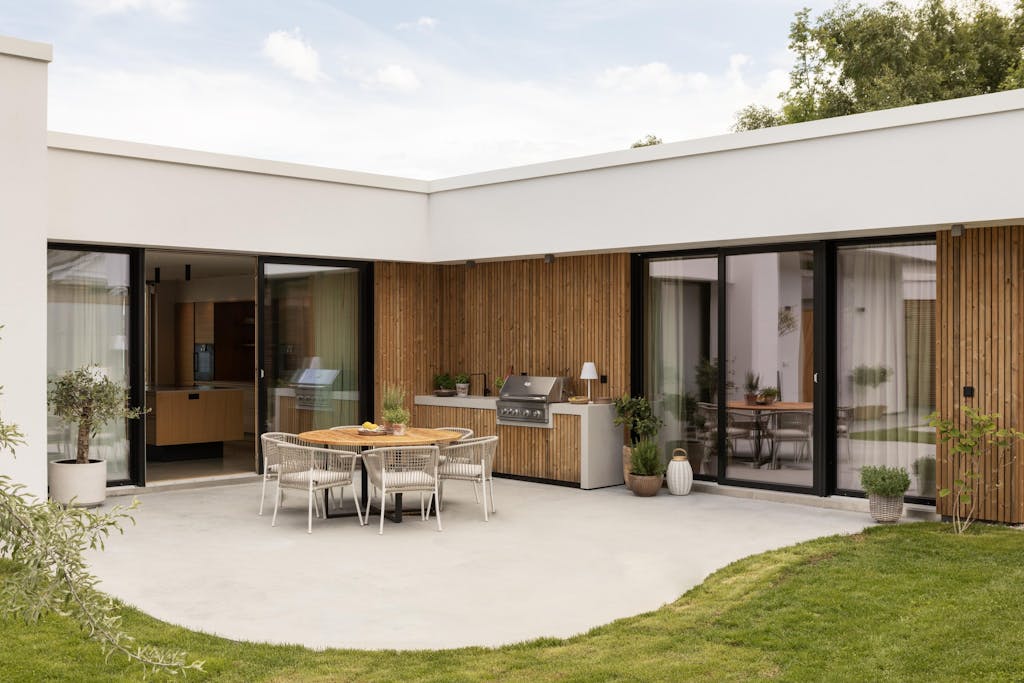 – Det er vanskelig å beskrive akkurat hvordan dette huset påvirker oss. Stemningen her er helt annerledes enn i det forrige hjemmet vårt, som lå mer åpent i terrenget, og var omgitt av hus på alle kanter. Erfaringen derfra gjorde at vi denne gangen har vært opptatt av å skjerme oss mer, og huset omkranser hagen. Dette er vår rolige oase, sier hun.