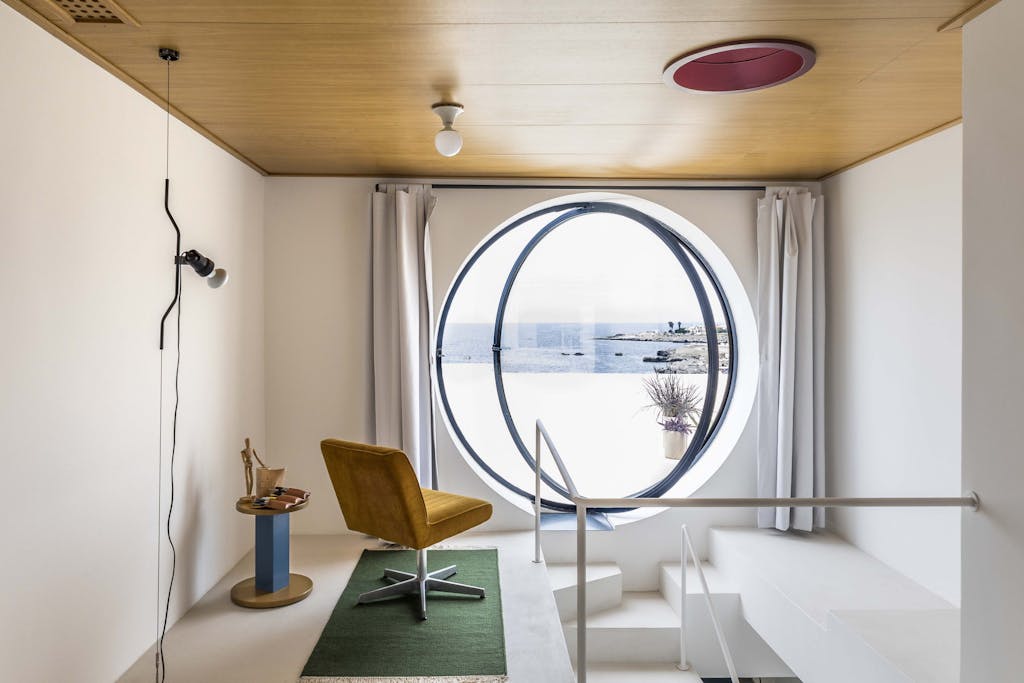 Arkitekt Eugenio Minerva vokste opp i kystbyen Nardò i Puglia i Italia. Nå har han renovert et hus der, og Casa Porthole som huset heter, har blitt en bolig som forener livserfaringene hans med barndommen. I dette historiske og fascinerende området, der du alltid kjenner lukten av sjø, har havet blitt en viktig del av huset. Casa Porthole er som en liten båt som nærmest er plassert på bølgene, og viktigst av alt er detaljen som også har gitt huset navn, det gigantiske kuøyet. Det runde vinduet fungerer også som dør, og det har blitt et sted hvor han kan sitte å observere verden og den blå horisonten utenfor.