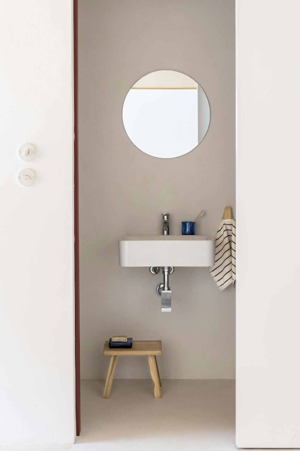 Alt her snakker det enkle språket til en som er kjent med båtlivet. Det var i det maritime Eugenio Minerva, som elsker å reise og har studert i både California og Venezia, fant inspirasjon. Fargene, materialene, møtet mellom tre og kalkstein, mellom glass, epoksy og keramikk, de minimalistiske, rene formene som smelter sammen, og at det kun er det aller nødvendigste her, forteller den samme historien.