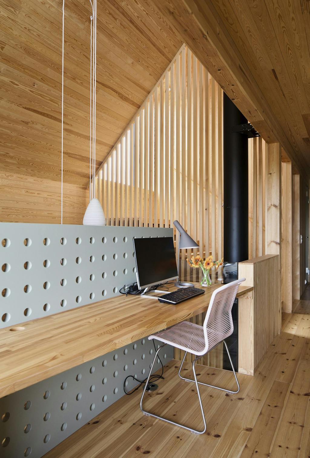 Tomten fikk hun av foreldrene etter at den hadde vært i familiens eie i mange år. Så vidt hun vet, er det ikke mange som har kledd fasaden med takstein – og det er en forfriskende tanke. Hun liker at huset er enkelt, elegant og funksjonelt.