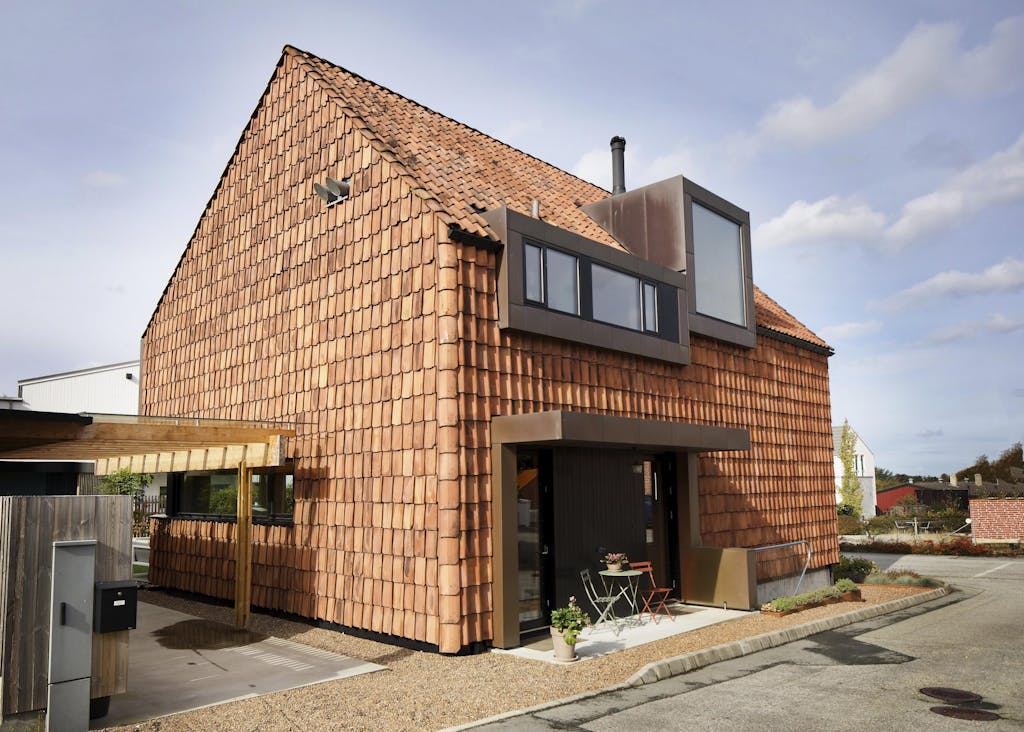Må et hus nødvendigvis ha en fasade av mur eller tre? Kan den ikke like gjerne være kledd med takstein? Det bestemte arkitektkontoret Haga & Grov seg for å teste ut på dette huset i Stavanger.