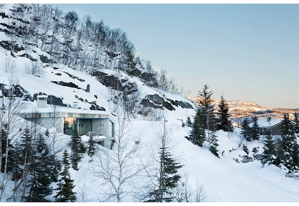 Teamet gikk inn i en spennende dialog med glassmester og betongentreprenør. Hytta skulle tåle et ras, og armeringen måtte dimensjoneres deretter. I stedet for å lage innvendige bjelker, ble alt plassert utenfor og oppå taket, og bakt inn i konstruksjonen. Resultatet? Et stort, åpent allrom med rene linjer, uten hindringer. Og store glassflater som ikke bare bader interiøret i lys, men gir orkesterplass til været som herjer utenfor.