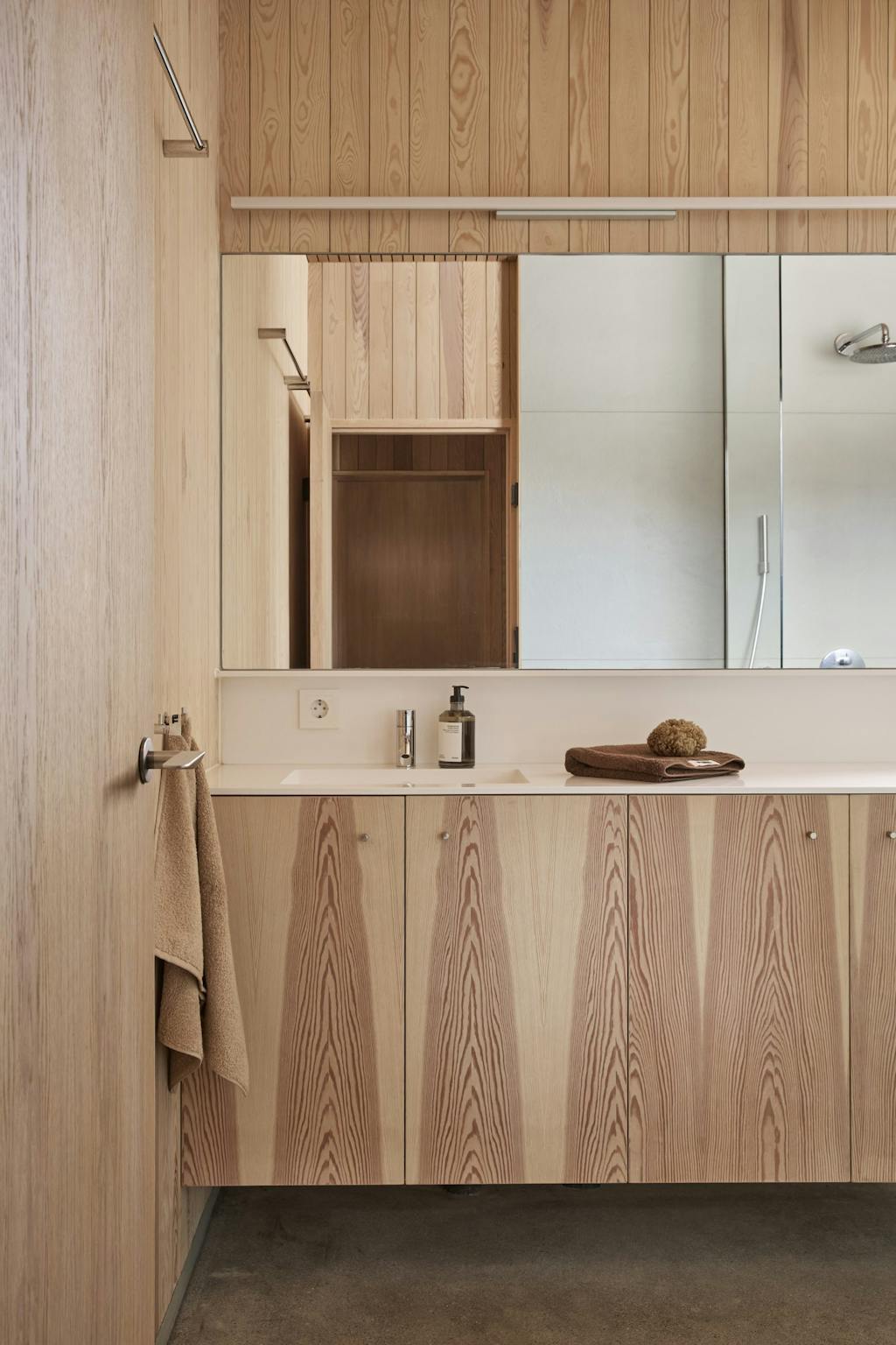 – Himlingene i gangen og på badene er også kledd med spiler, men her for å dempe gjenklang fra de harde betonggulvene.