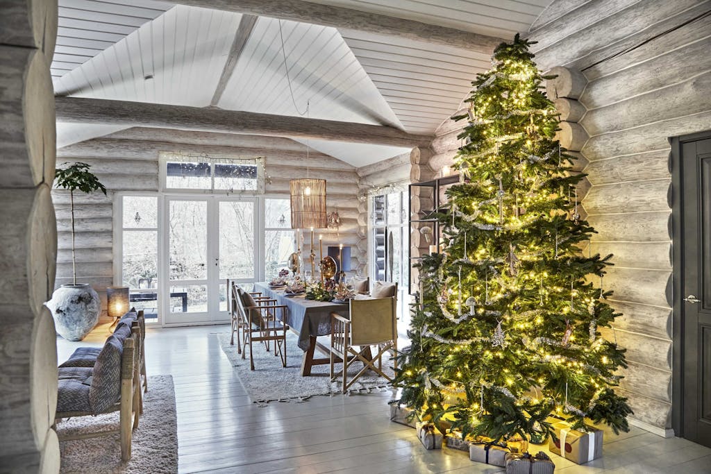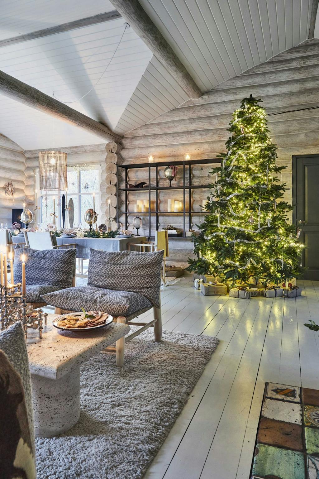 – Jeg har alltid drømt om et kjempejuletre, og her har vi plass til det. Det er av plast, og vi har valgt det mest naturtro treet vi kunne finne. Jeg hadde aldri trodd jeg skulle ha et kunstig tre, men det er smart å ha et tre som kan pakkes ned og brukes år etter år. Vi har et stearinlys med den deiligste duften av gran, noe som er med på å forsterke følelsen av et ekte tre. Mange tror faktisk at det er ekte.
