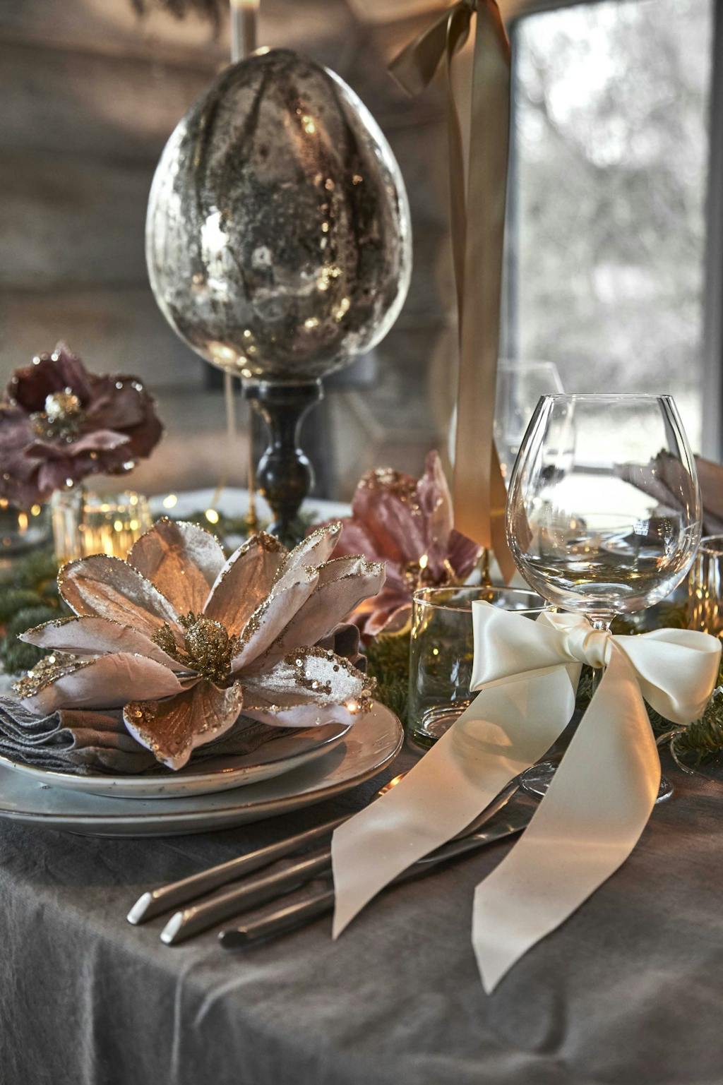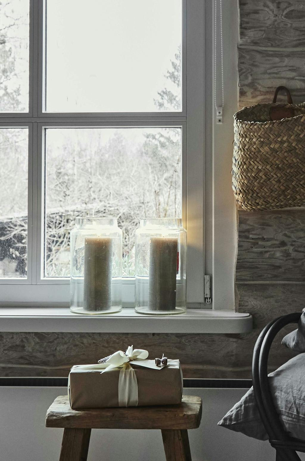 Naturpynten fra hagen og skogen passer perfekt til hytta og interiøret. Det er stein og tre, dempede farger som grå, brun, beige, hvit og svart, med noen fargerike innslag fra blomster og grønne planter. Den rolige fargeskalaen gir også rom for å være litt dristige med julepynt, lys og glitter.