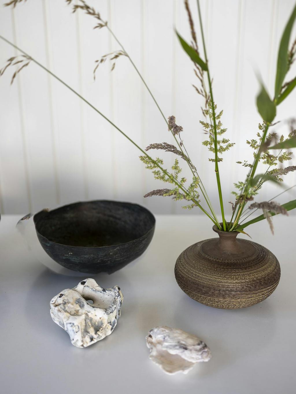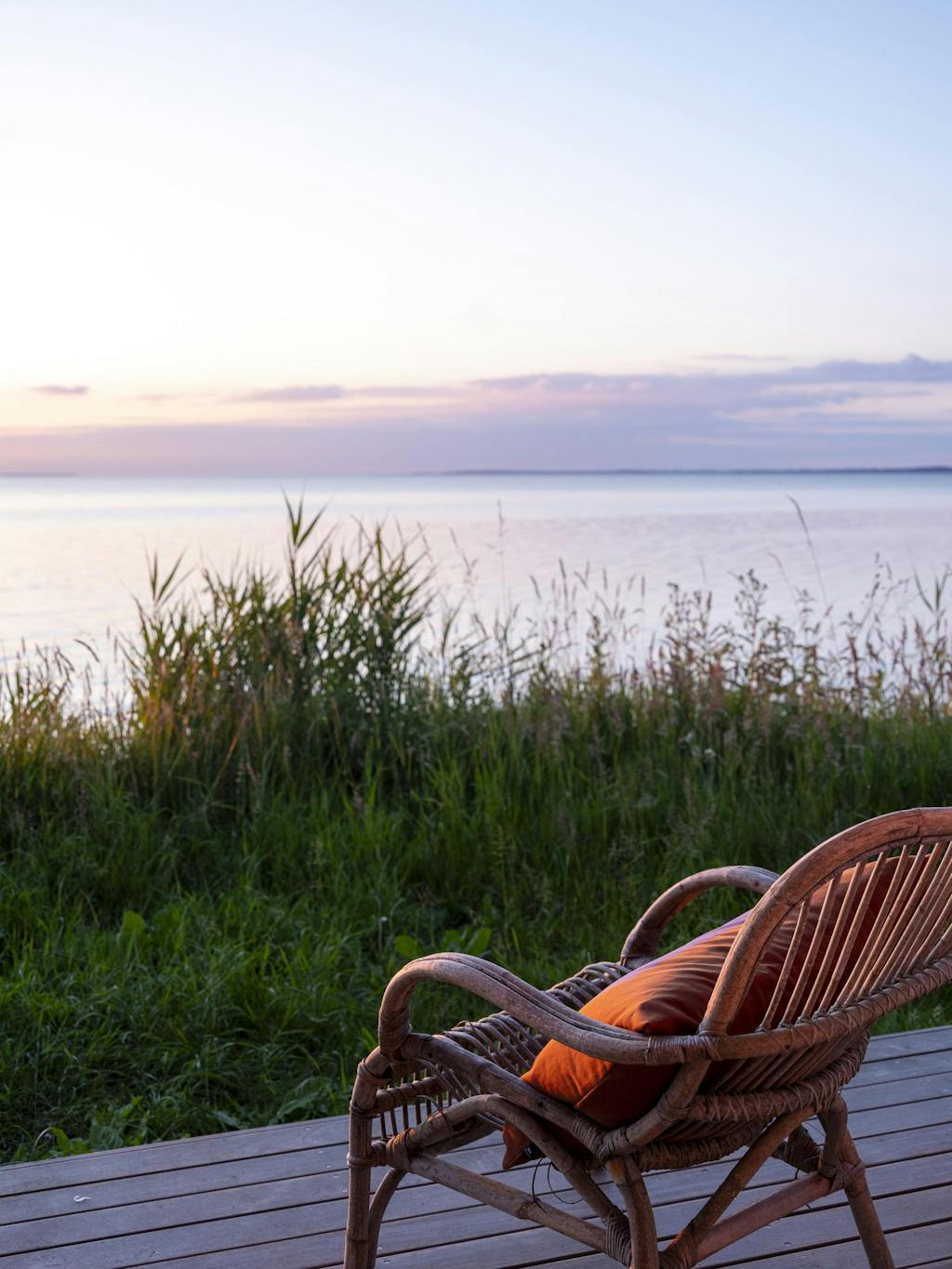 Den lille hytta ligger ligger vakkert til mellom stranden og skogen. I det høye gresset har de en spiseplass, hvor de kan sitte og skue ut over havet og nyte solnedgangen.