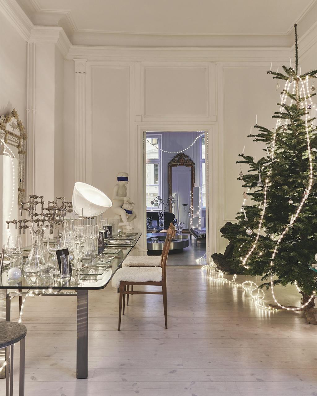 – Jeg er veldig fascinert av lyskunst, så det var åpenbart at det skulle være temaet for julen i år. Jeg ville skape et snøhvitt designeventyr hvor en vakker blanding av interiør, design og kunst fra hele verden dannet rammen.