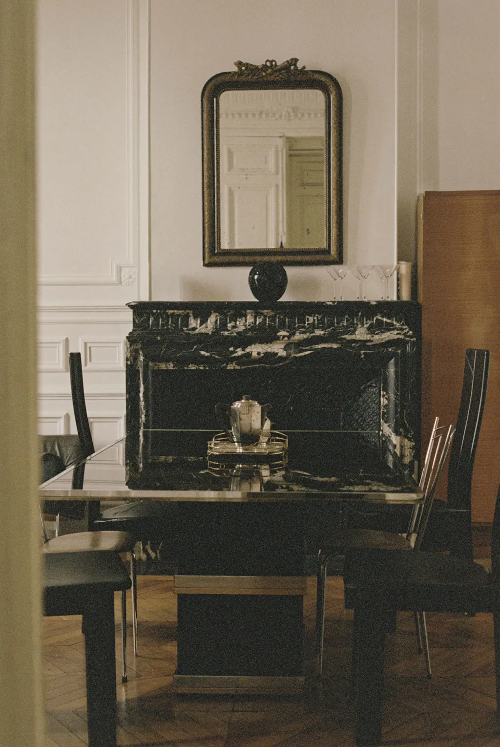 – Den var hvitmalt, med klassiske parisiske elementer. Det elsker jeg. Over det som en gang var en peis, hang det et stort, vakkert speil, og det har jeg selvfølgelig beholdt. Veggene var preget av utdaterte lamper, så de skiftet jeg ganske raskt ut.