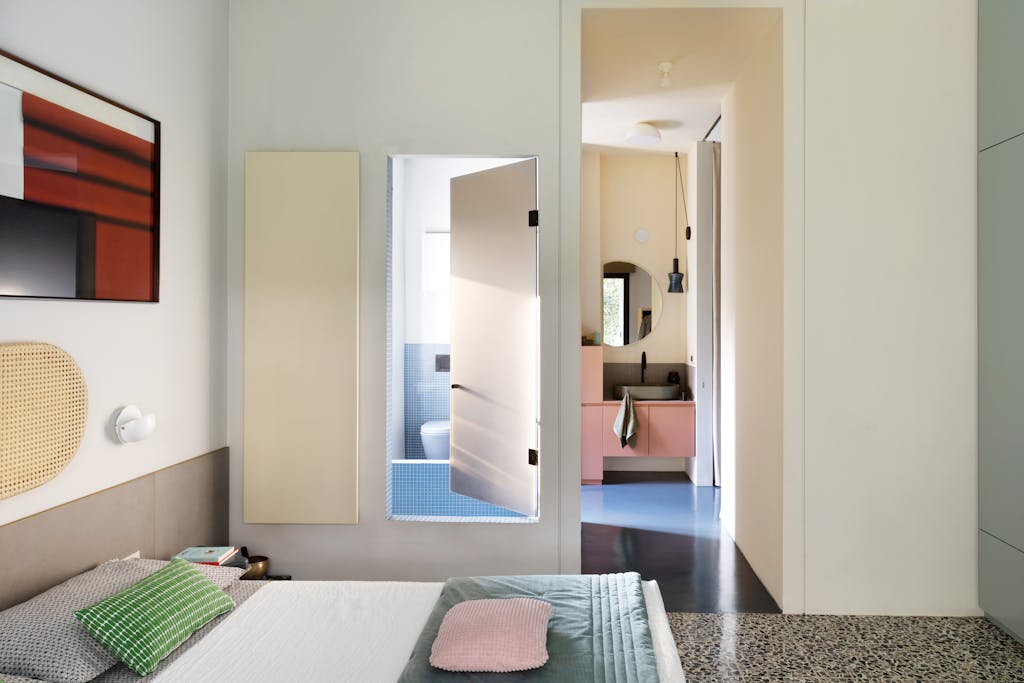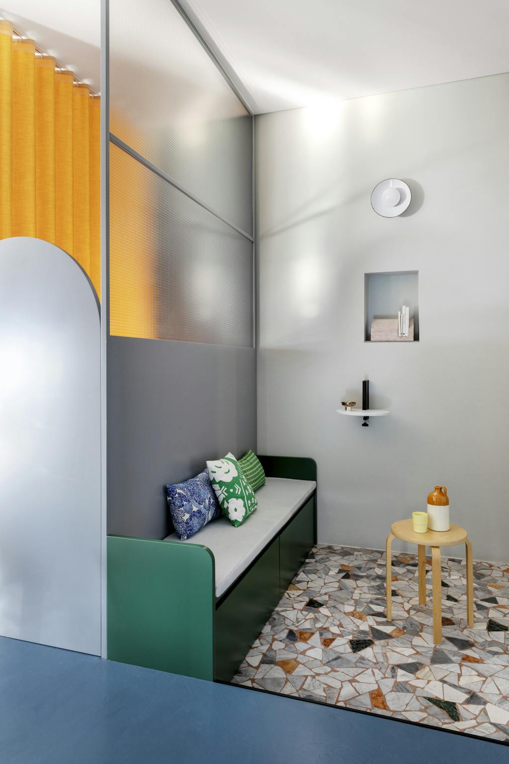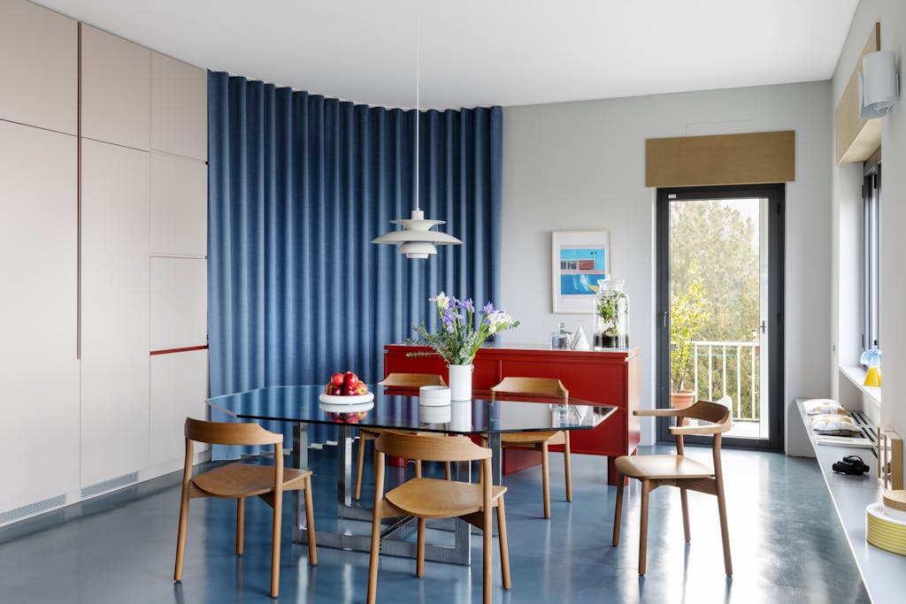 Se hjemmet hvor det blir lekt med farger, teksturer og geometriske former