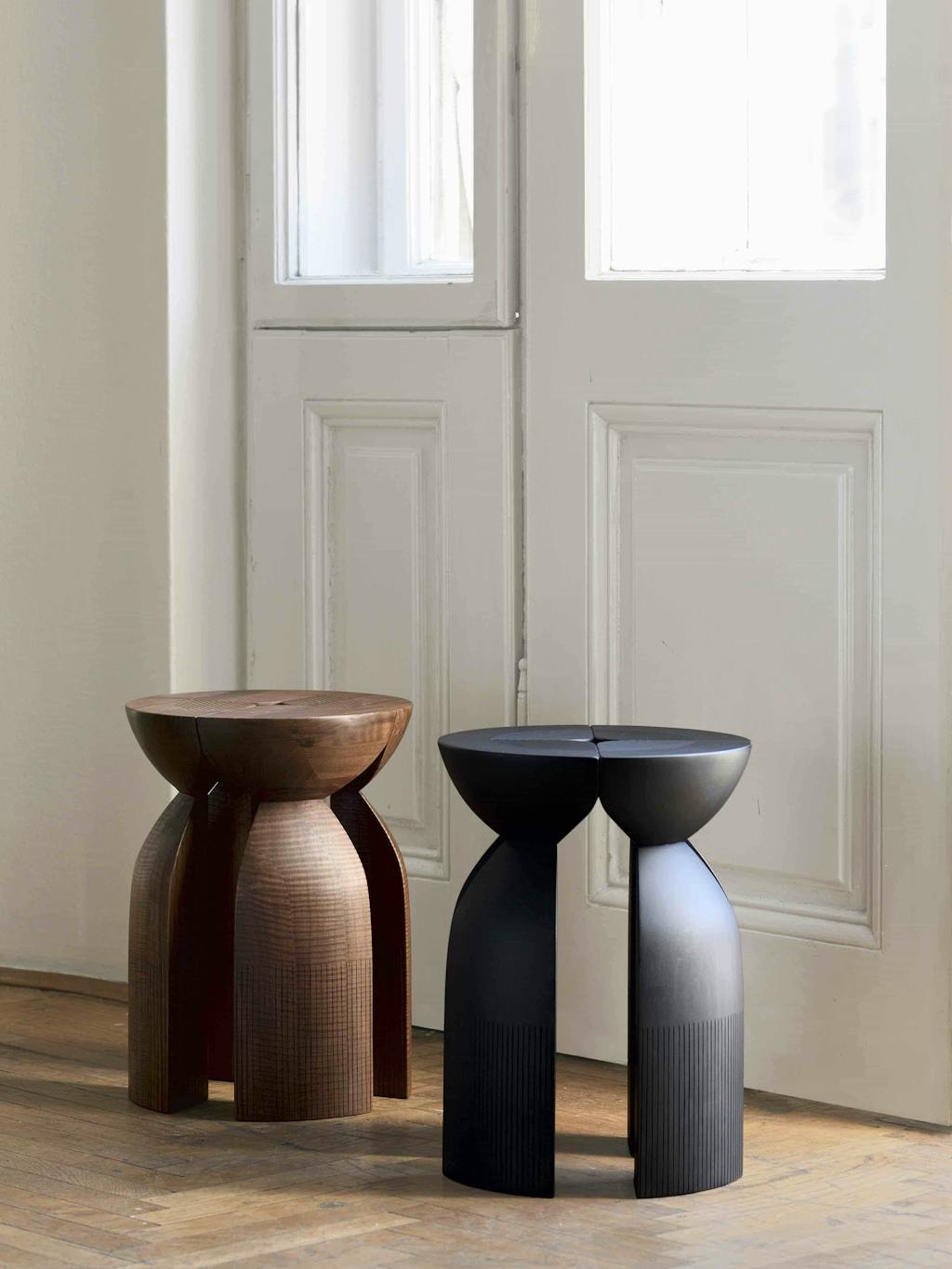 Unity krakken er designet av designeren og kunstneren, Monica Förster for Zanat. Den er laget i massivt tre med elegante håndskårne detaljer, og egner seg like godt som sidebord og krakk.