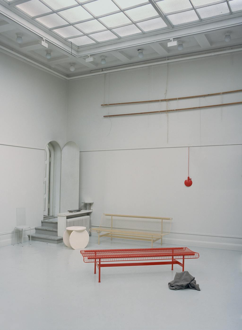 Benkene, som er utført av foregangsbedriften Vestre i lakkert, svensk stål, oppleves nette og transparente til tross for en tydelig robust konstruksjon, samtidig som det buede formspråket har evnet det umulige: Å gjøre stål mykt. Det harde metallet har endret karakter, og tilbake står et innbydende, godt møbel. Og dessuten: Et som vil vare i generasjoner. Fargene, som er hentet fra Munchs egen palett, gir møblene ekstra karakter, noe som gjør dem like vakre å se på, som de Vatne-produserte polstrede putene vil gjøre dem behagelige å ta (kunst)pauser på.