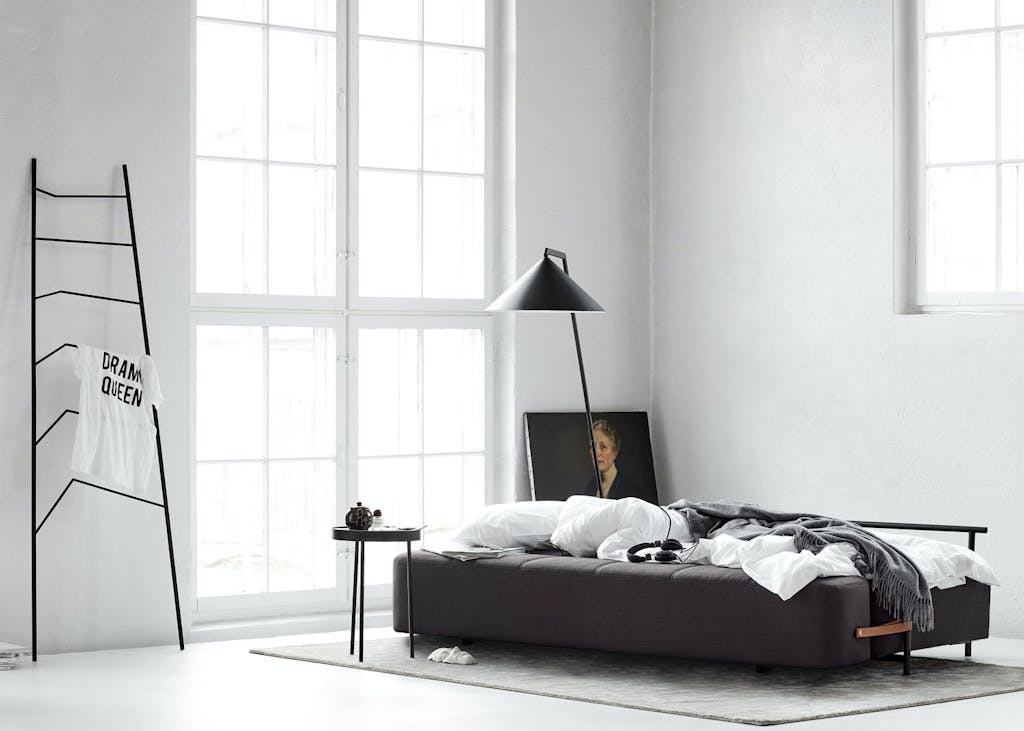 Her er de første bildene fra debutkolleksjonen. Dagsengen Daybe, designet av Morten & Jonas, lampen Gear floor, designet av Johan Lindsten. Multifunksjonell "stige", Nook, designet av Cecilia Xinyu Zhang.
