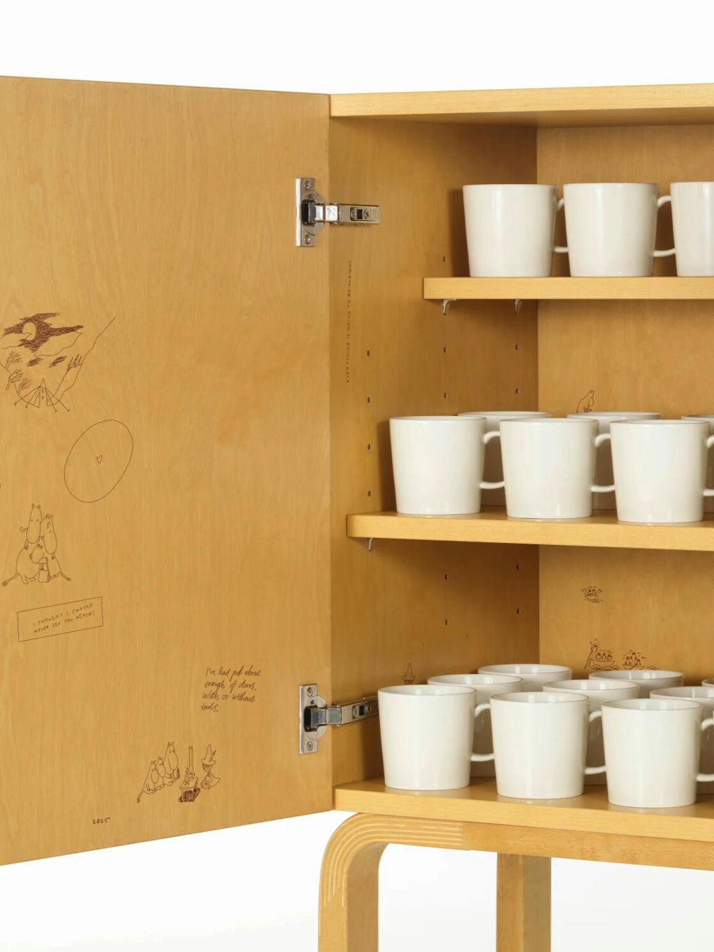 Artek har lansert to spesialutgaver av Alvar Aaltos berømte krakk og skap under navnet «Den uventede gjest», med motiver og sitater av Tove Jansson, mummitrollenes mor, som pryder de to møblene.