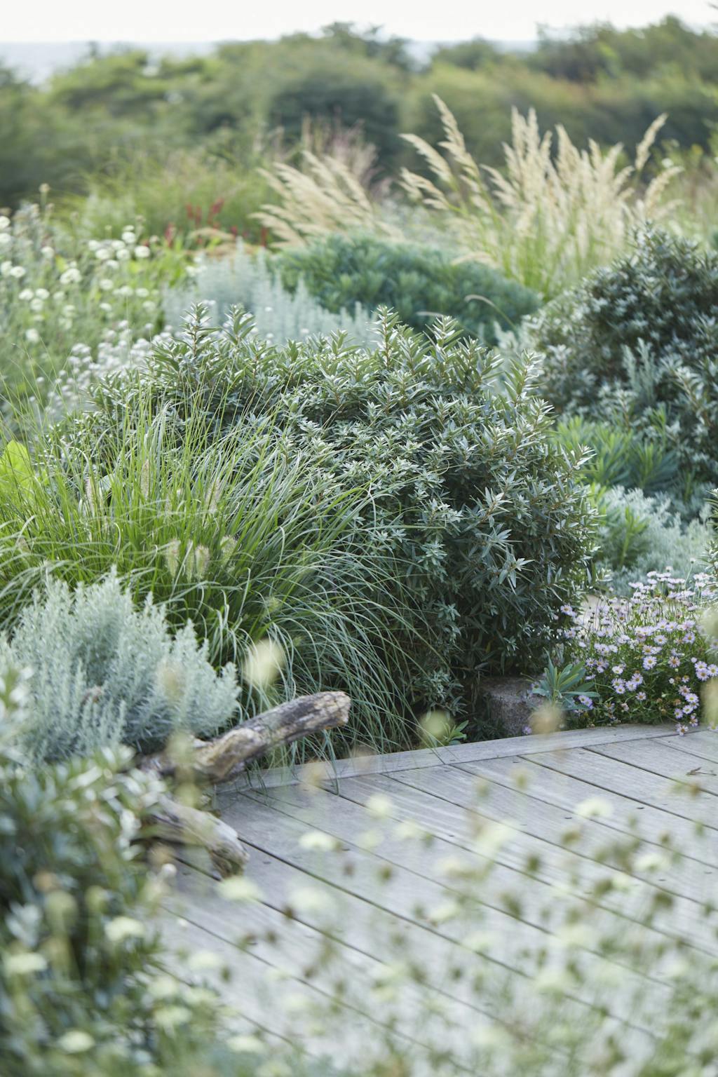 For å oppfylle ønskene sine bestemte de seg for å rydde den eksisterende hagen og skape en beplantning som passet til himmel og hav, slik at de på en måte kunne trekke havet opp til huset. Det valget har de ikke angret på.