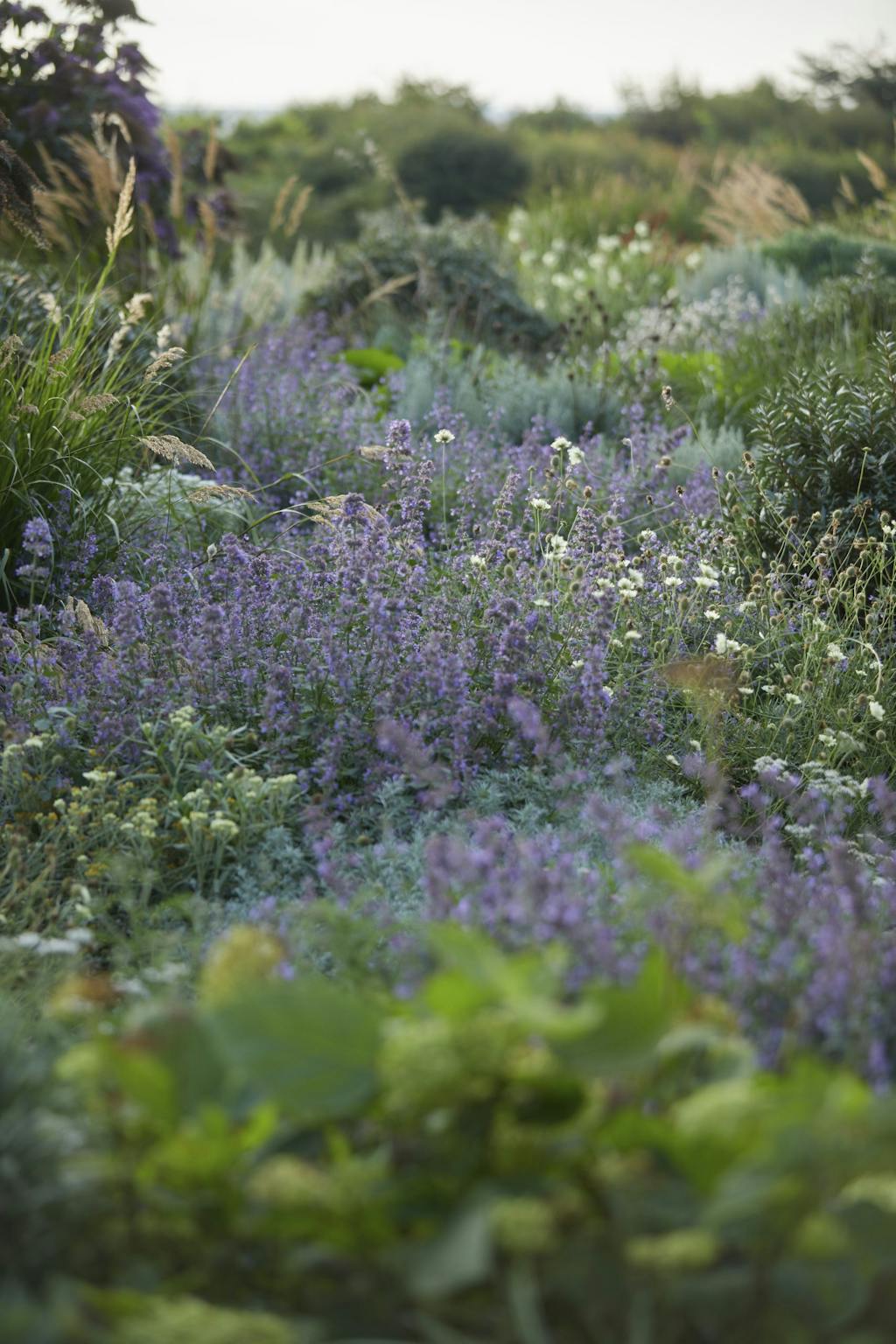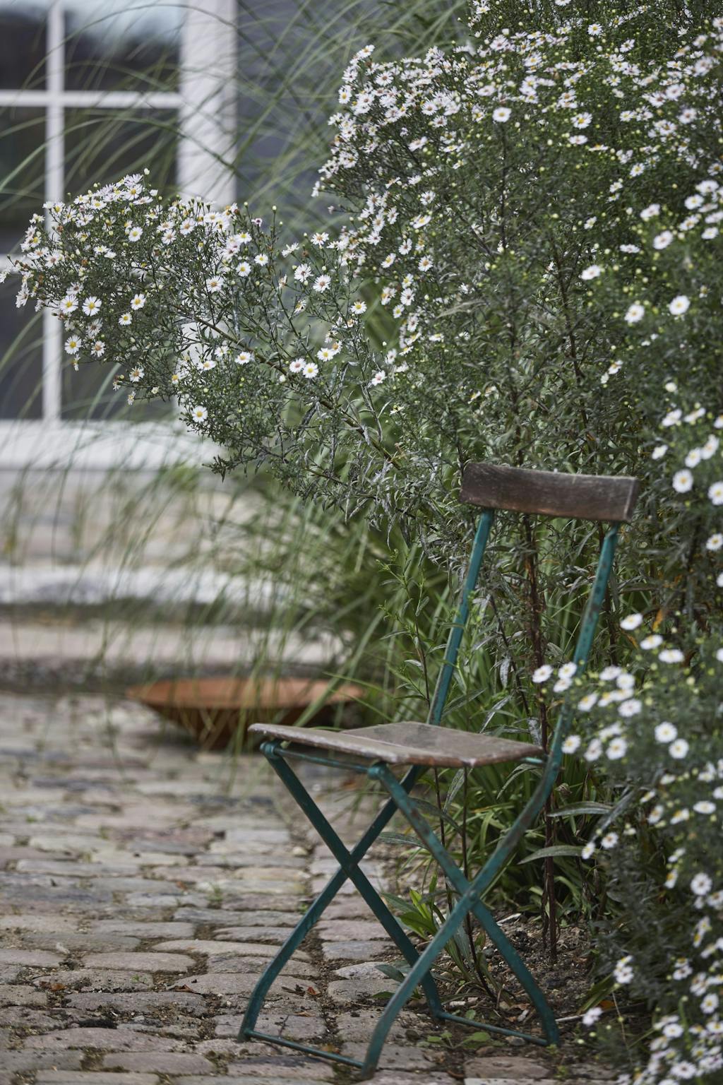 Ikke minst fordi hagen er anlagt utradisjonelt. Her finnes ingen gressplen, det er enten sitteplasser med belegningsstein eller tettplantede bed som dekker jorden, slik at ugresset får dårlige vekstvilkår. I tillegg tåler plantene tørke, så det er ikke nødvendig å vanne i timevis i varme perioder.