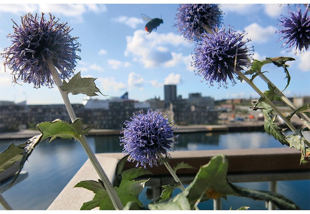 PLANTER FOR ET RIKERE DYRELIV I BYEN. Enten du skal plante på en takterrasse, en balkong eller i en felles bakgård, vil disse plantene være til glede for både deg selv, naboer og lokale humler (og – om du er heldig – honningbier og sommerfugler): Anemone, akeleie, anisisop, asters, blodkløver, blåbær, eføy, erteblomst, gullklematis, hagepute, honningurt, hvitkløver, isop, kanadablåhegg, kjempeverbena, kuletistel, krokus, lavendel, liguster, lønn, løvetann, magnolia, mjødurt, mynte, oregano, paradiseple, petunia, plomme, purpursolhatt, revebjelle, rosmarin, rutelilje, ryllik, salvie, sitronmelisse, markjordbær, smørbukk, snøklokke, solbrud, solsikke, sommerfuglbusk, storkenebb, stjerneskjerm, svarthyll, sypress, timian.