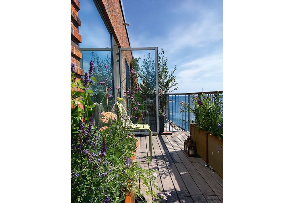 Lettstelte og hardføre stauder og trær i potter forvandler en kjedelig balkong til en frodig hage.