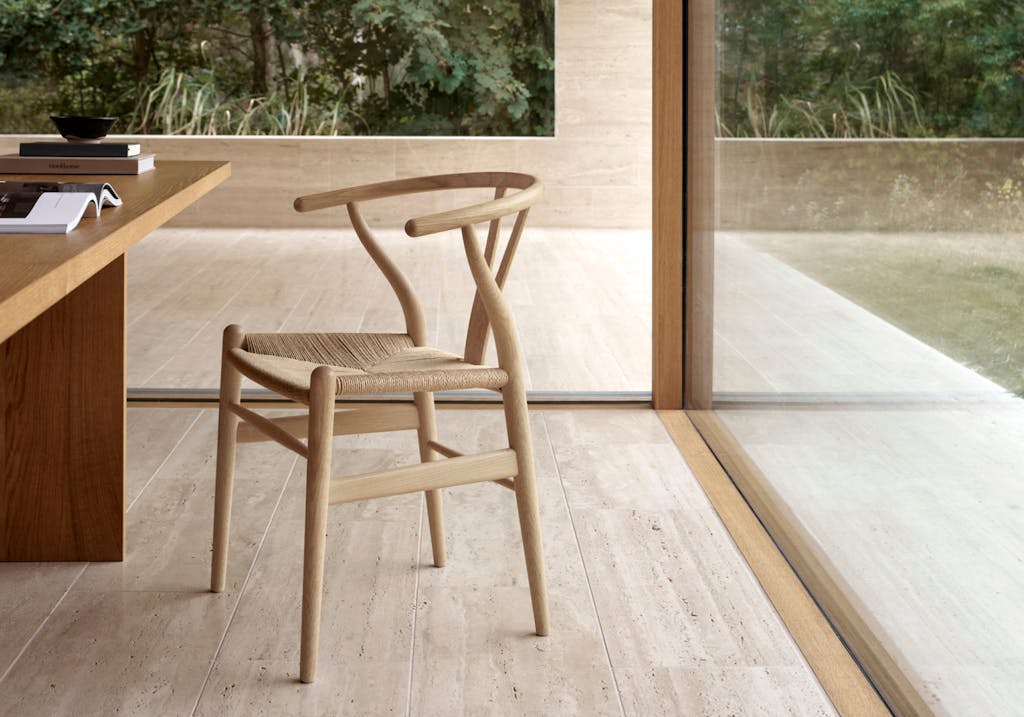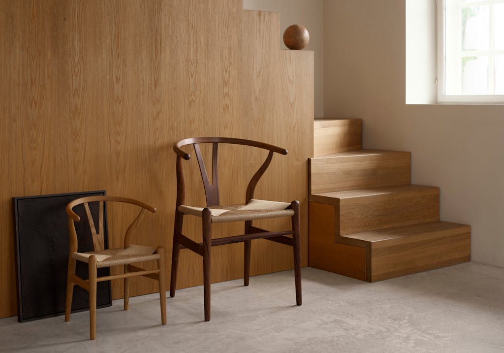 Først i rekken er selvfølgelig den ikoniske CH24, som i dag pryder mange spisestuer, restauranter og hoteller rundt om i verden. Stolen har blitt kjent som Y-stolen på grunn av det Y-formede rygglenet, som er både komfortabelt og minimalistisk. Stolen har vært i kontinuerlig produksjon siden 1950.