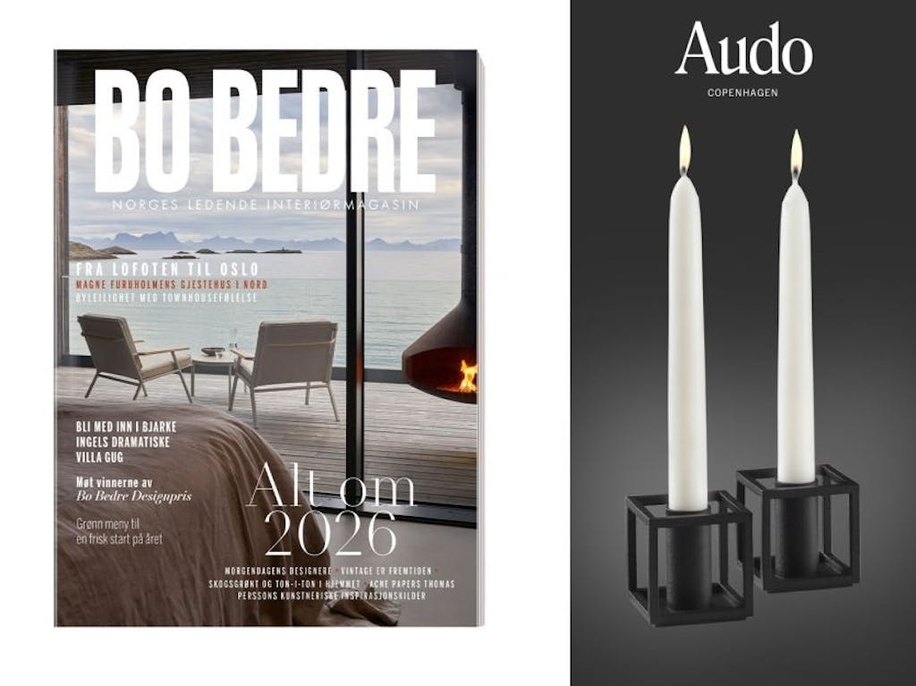 Dersom han er boliginteressert, så vil et abonnement på BO BEDRE være den perfekte gaven. Akkurat nå får du Audo sine Kubus-lysestaker + 3 nr. av BO BEDRE til kun 348 kr.