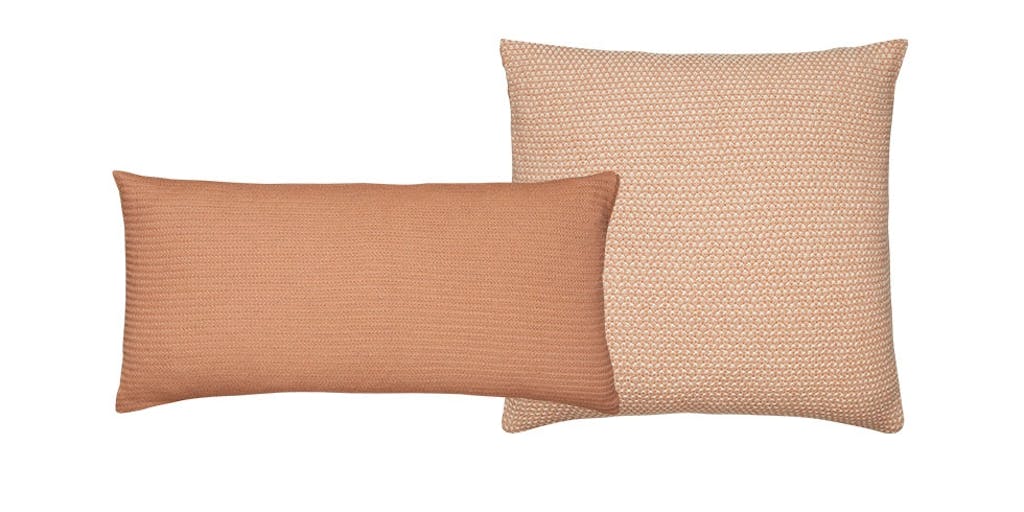 Vårens farger har litt svart i seg. Det gjør dem sære, men kule. Avlangt putetrekk, 999 kr, kvadra- tisk, 1490 kr, begge fra Aiayu.