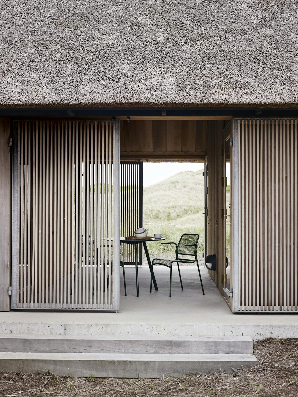 Lys og luft, ja takk, men likevel i ly. Perfekt! Innred med metallstolen Mira, som kan stables, og fås med og uten armlener. Fra 2495 kr, skagerak.dk.
