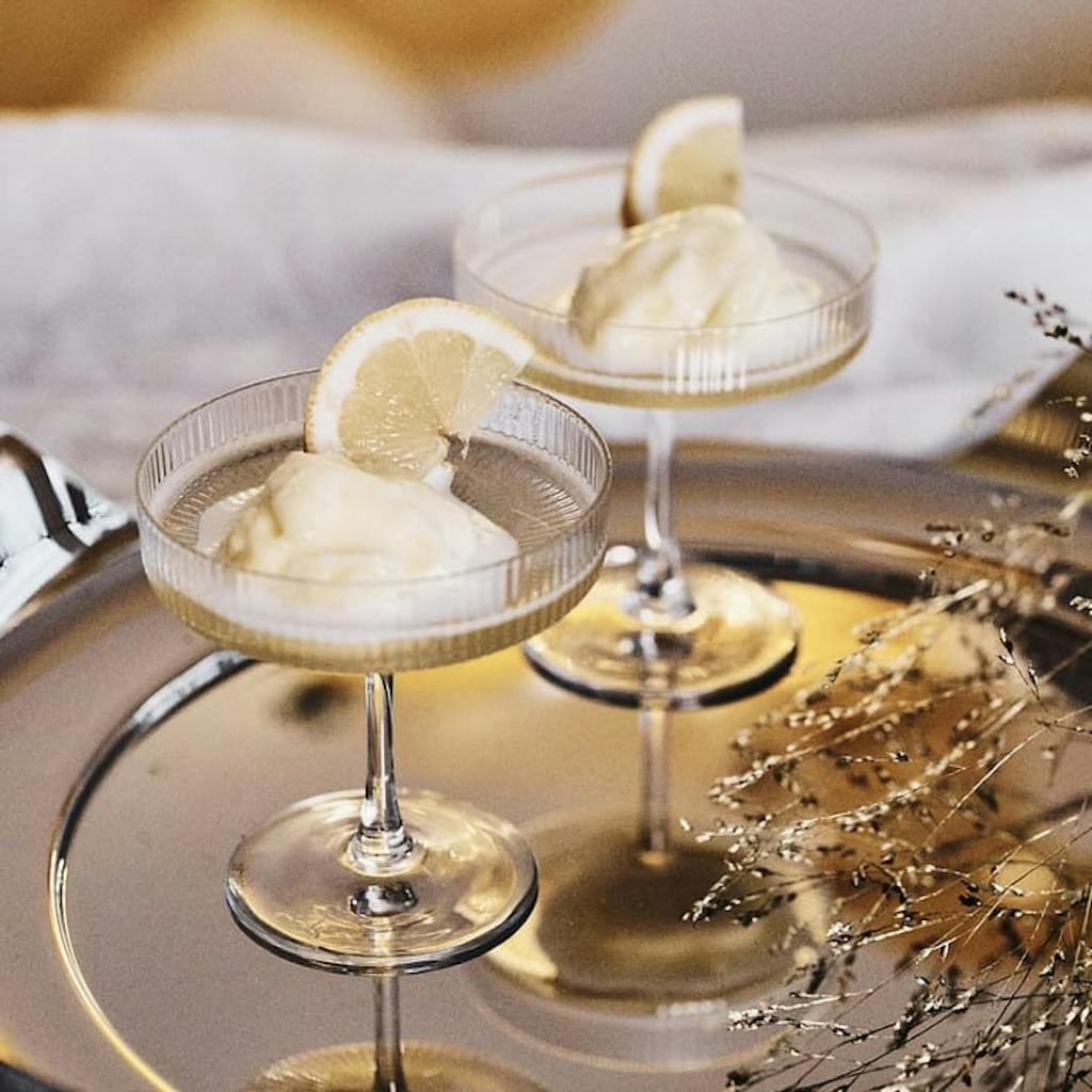 Gå for noen flotte champagneglass fra Ferm Living. Disse er så fine at de selv kan stå fremme som en del av interiøret.