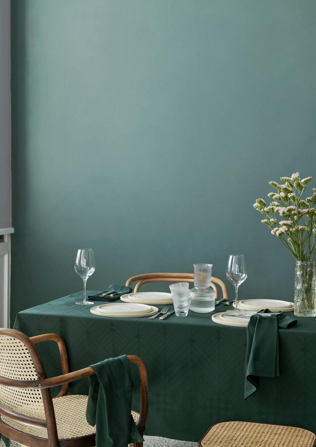 Georg Jensen Damask har nettopp lansert den ikoniske juleduken som er vevd av 100 prosent egyptisk bomull i en dyp, grønn farge kalt København. Fargen er inspirert av de historiske portene og benkene vi kjenner fra hovedstaden. En beroligende farge som denne kan brukes sammen med andre klassiske julefarger, men den gir samtidig mulighet til å leke med andre farger som en dempet bakgrunnsfarge.