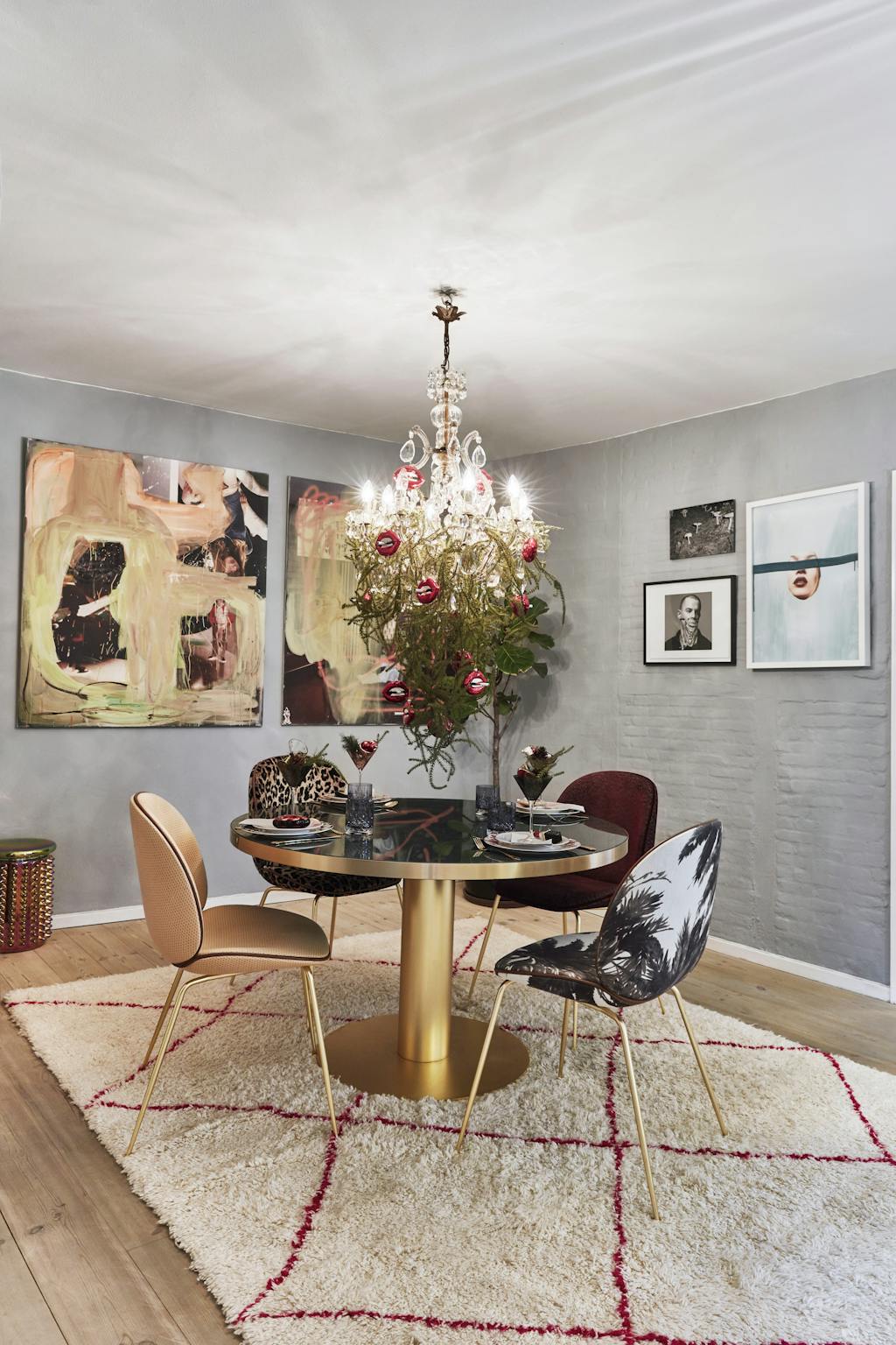 I denne leiligheten har julen et maksimalistisk og fargerikt uttrykk