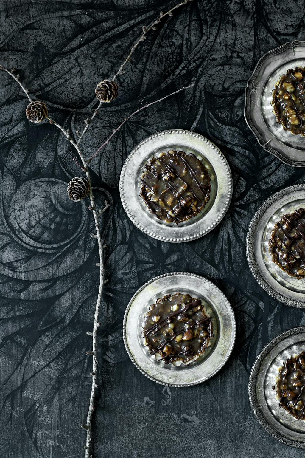 Søte daddelkuler med dryss av lakris, kakao og kokos