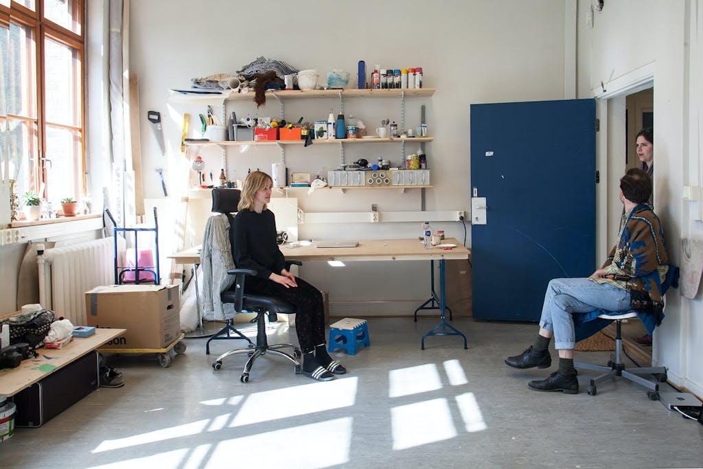 Kunstner Kristine Dragland med publikum i sitt atelier på Økern under Oslo Open 2017.