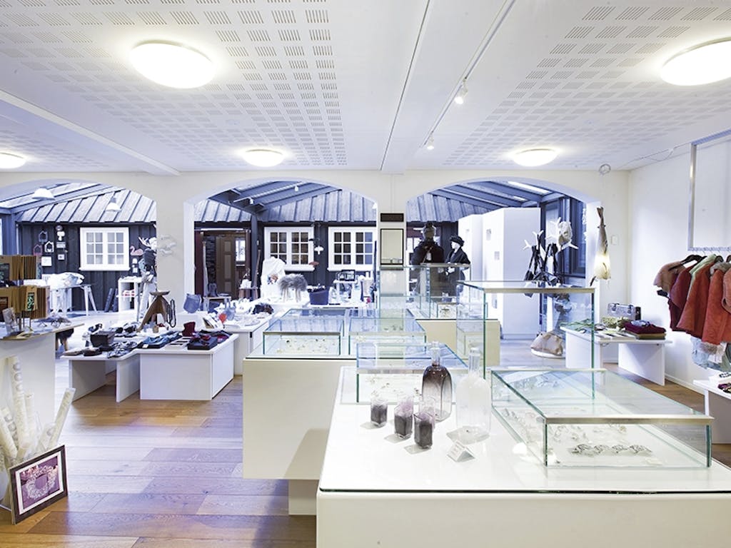 Kraum har tradisjonelle islandske produkter som tovet ull og håndlaget keramikk, men her er også lampen av torskeskinn av Dögg Guðmundsdóttir, som blant annet designer for Ligne Roset.
