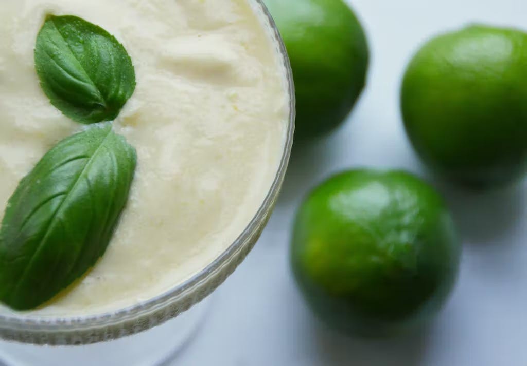 Denne skjønne drinken uten alkohol er forfriskende og lekker. Den vil klart fungere godt til lune sommerkvelder. Og hvis du tilfører kokos-sirup kan den minne om en Piña Colada!