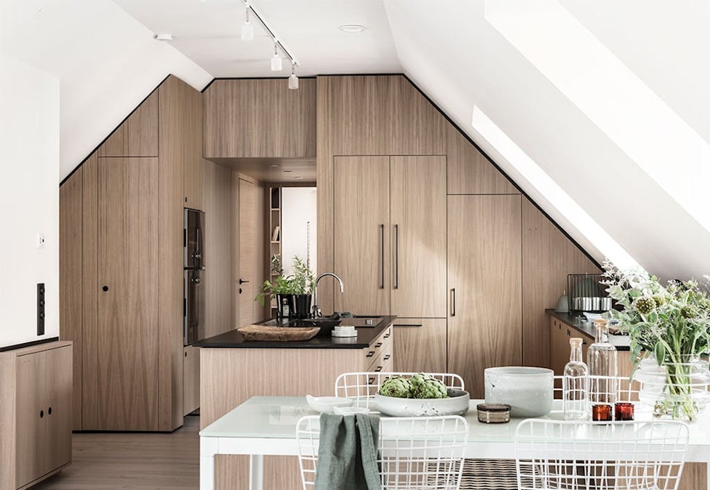 Betong og eik gir dette kjøkkenet et helt rått uttrykk